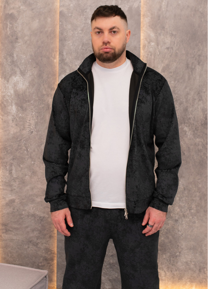 Олімпійка: Вільний крій, комір-стійка, надійна металева блискавка та еластичні манжети.
