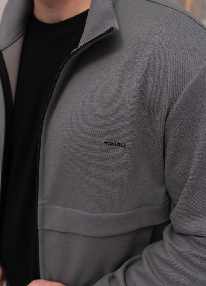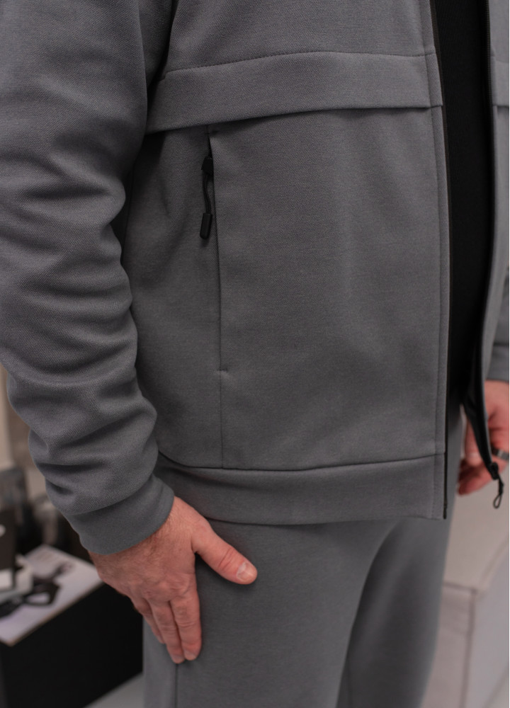 Дизайн: лаконічний сірий колір та оригінальні декоративні елементи на грудях.
