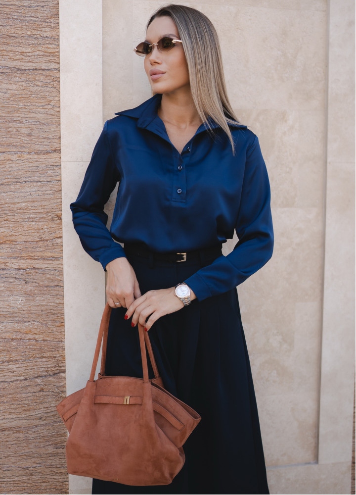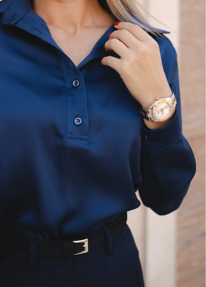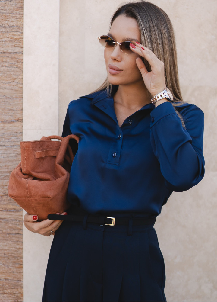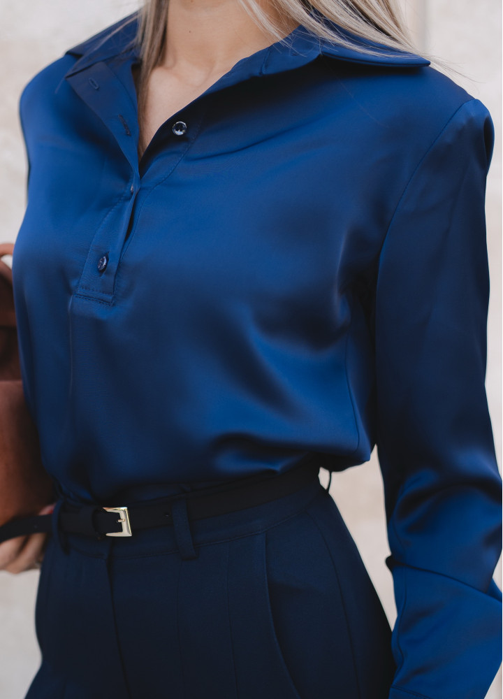 Ідеальний елемент ділового, вечірнього чи святкового гардеробу. Чудово виглядає заправленою у штани з високою талією або спідницю.