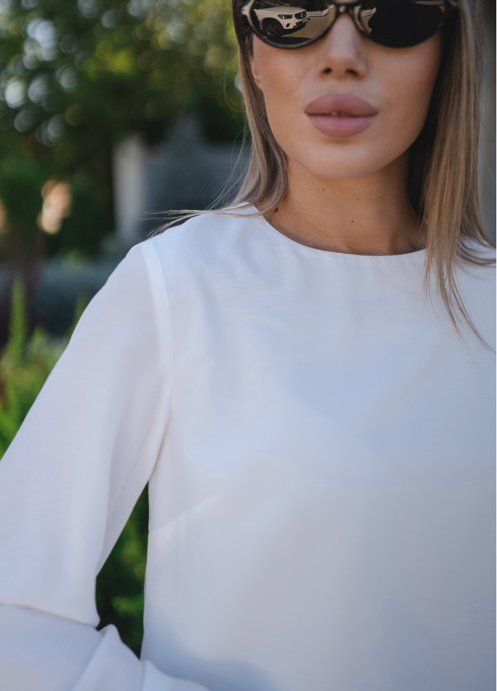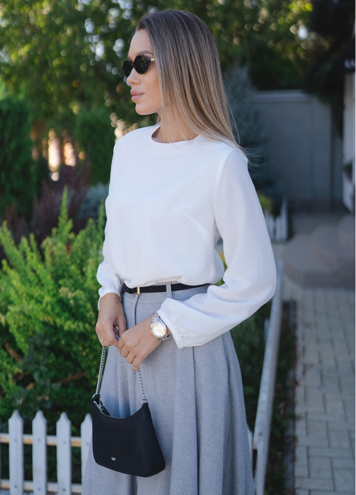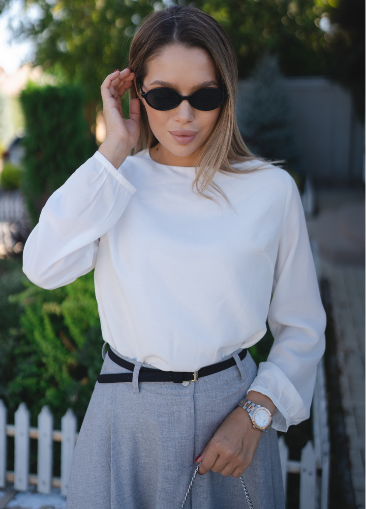 Ця елегантна біла блузка - ідеальне доповнення до вашого ділового або повсякденного образу. Модель виконана з легкого матеріалу, що струмує, який забезпечує комфорт і свободу рухів протягом усього дня.