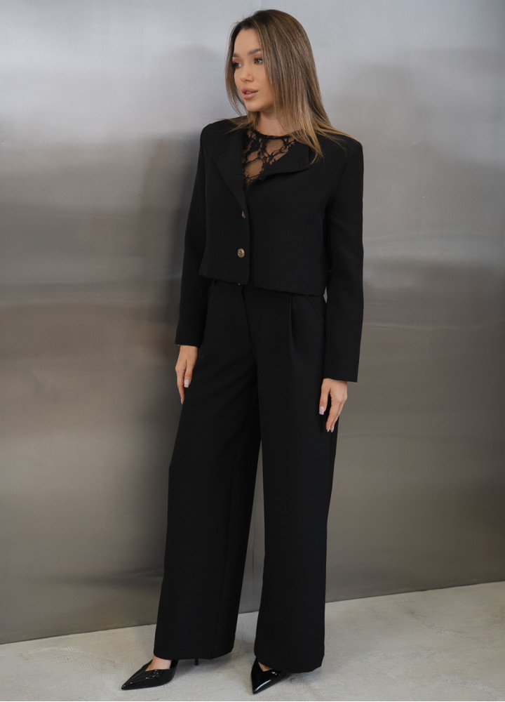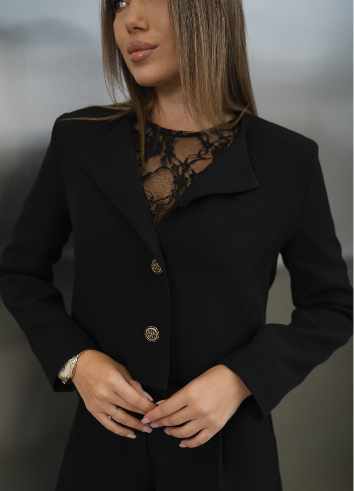 Виконаний у благородному чорному відтінку, цей жакет стане ключовим елементом гардеробу.