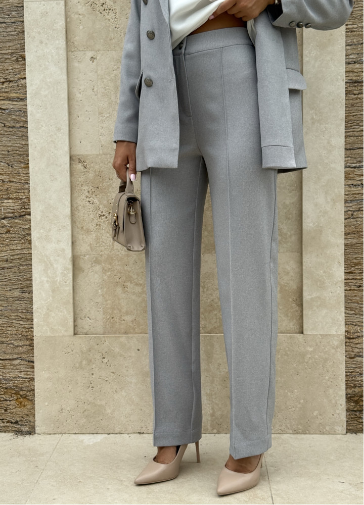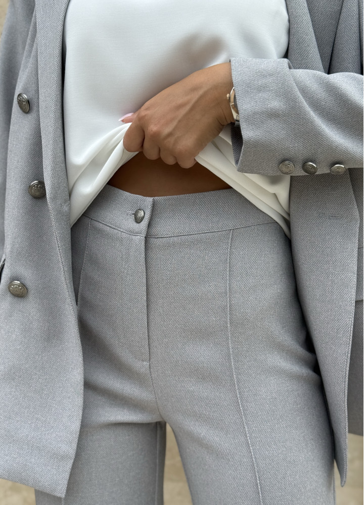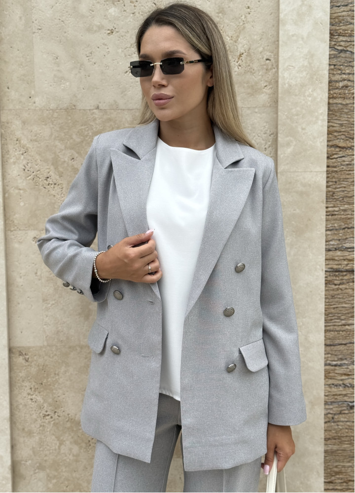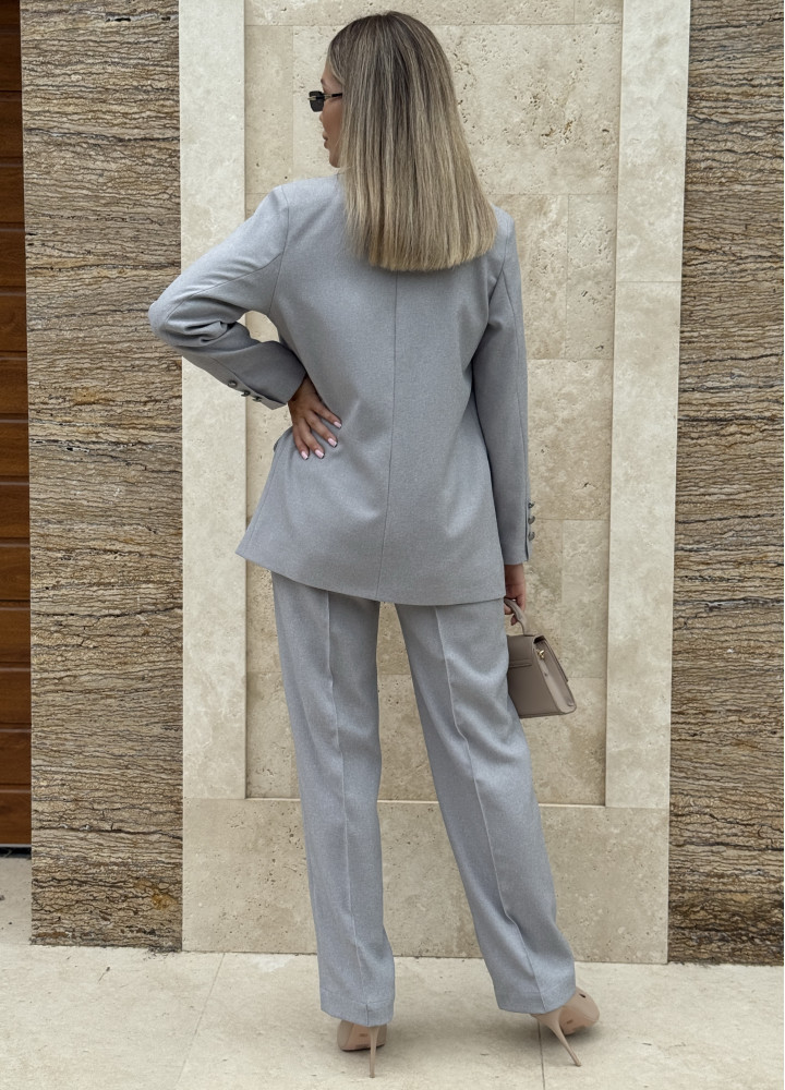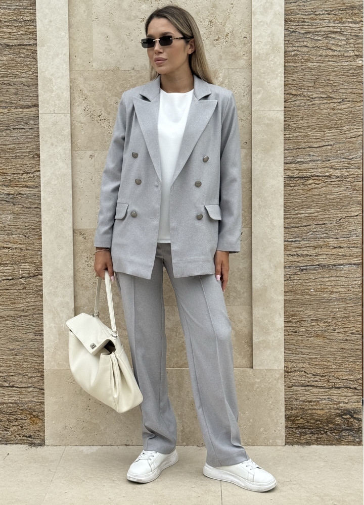 Класичний костюм-двійка, виконаний із преміальної костюмки.