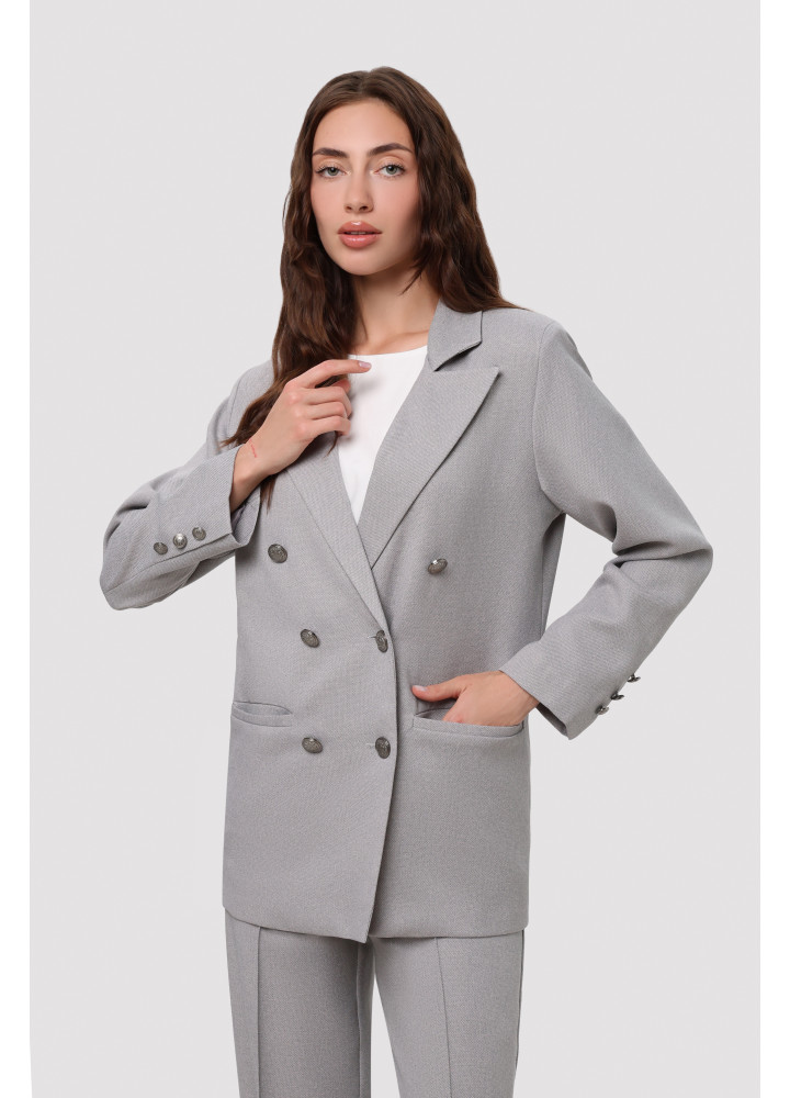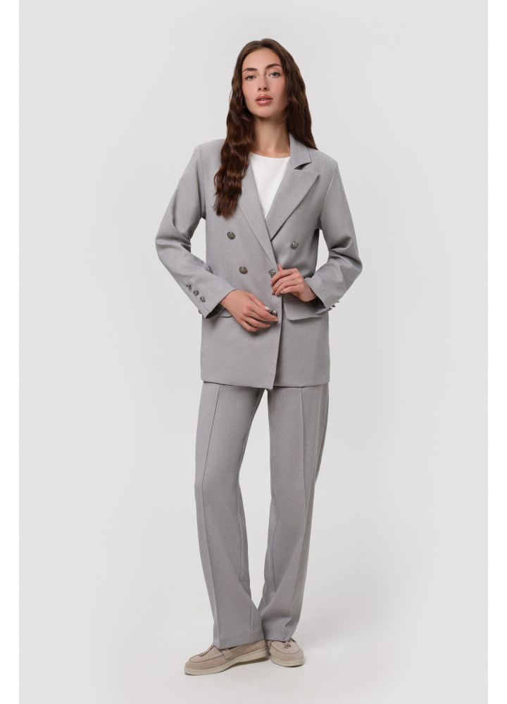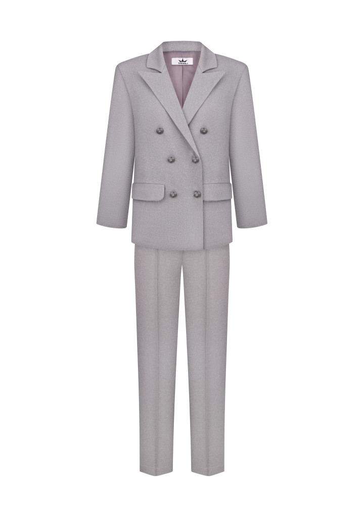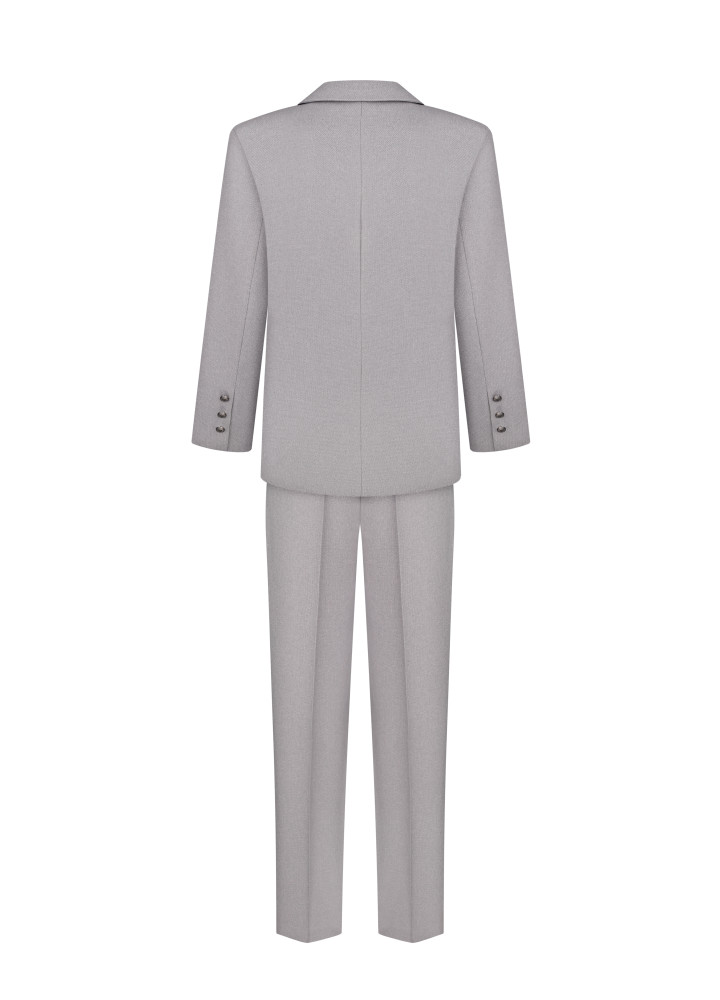 Класичний костюм-двійка, виконаний із преміальної костюмки.