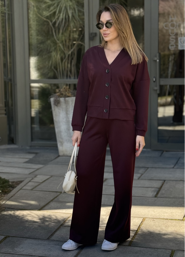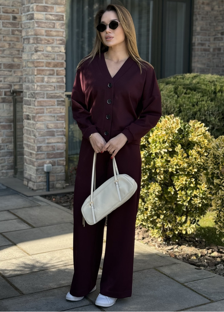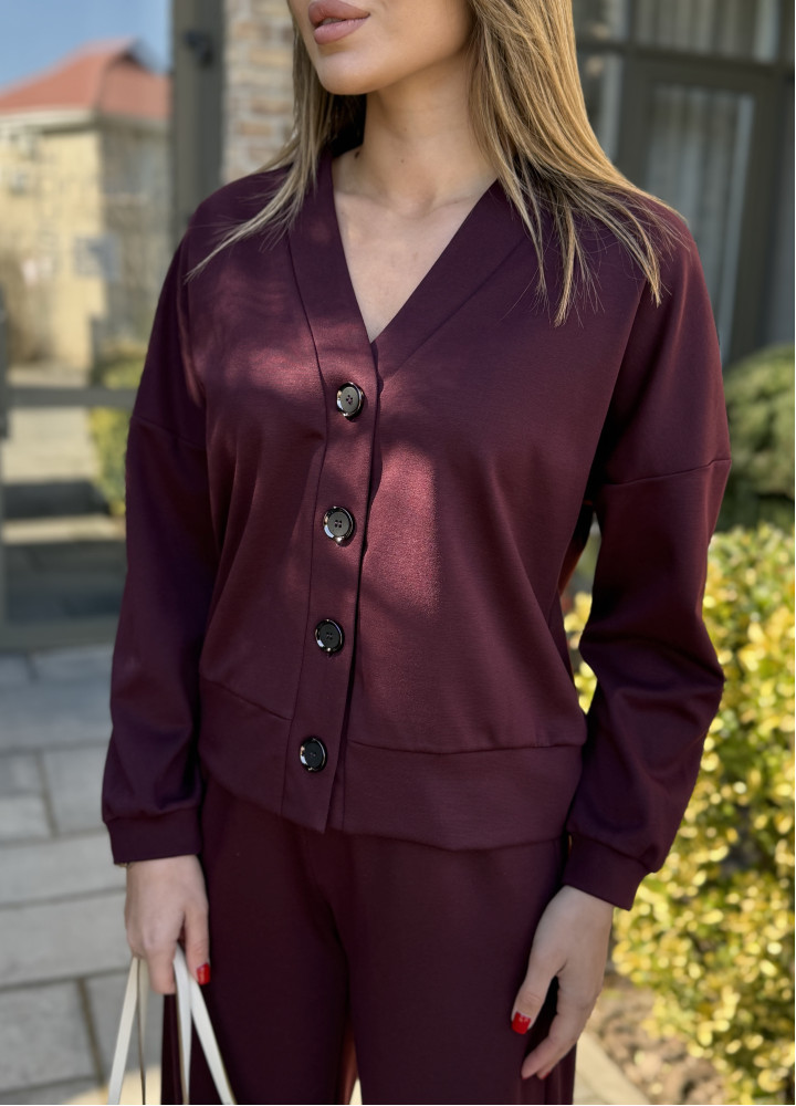 Цей елегантний трикотажний костюм у глибокому бордовому кольорі — ідеальний баланс між офісною класикою та розслабленим casual. Виконаний зі щільної та зносостійкої тканини алекс, він чудово тримає форму, не витягується та приємний до тіла.