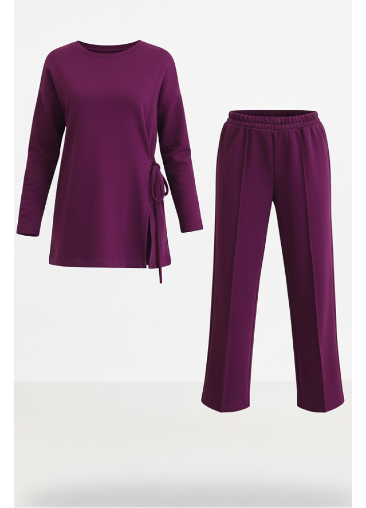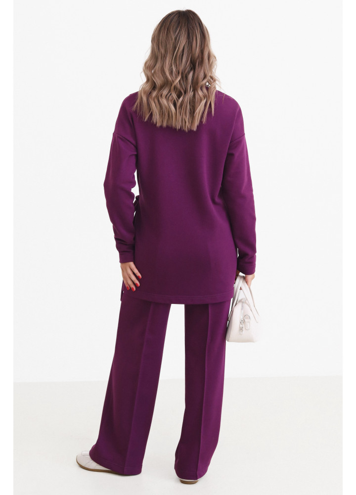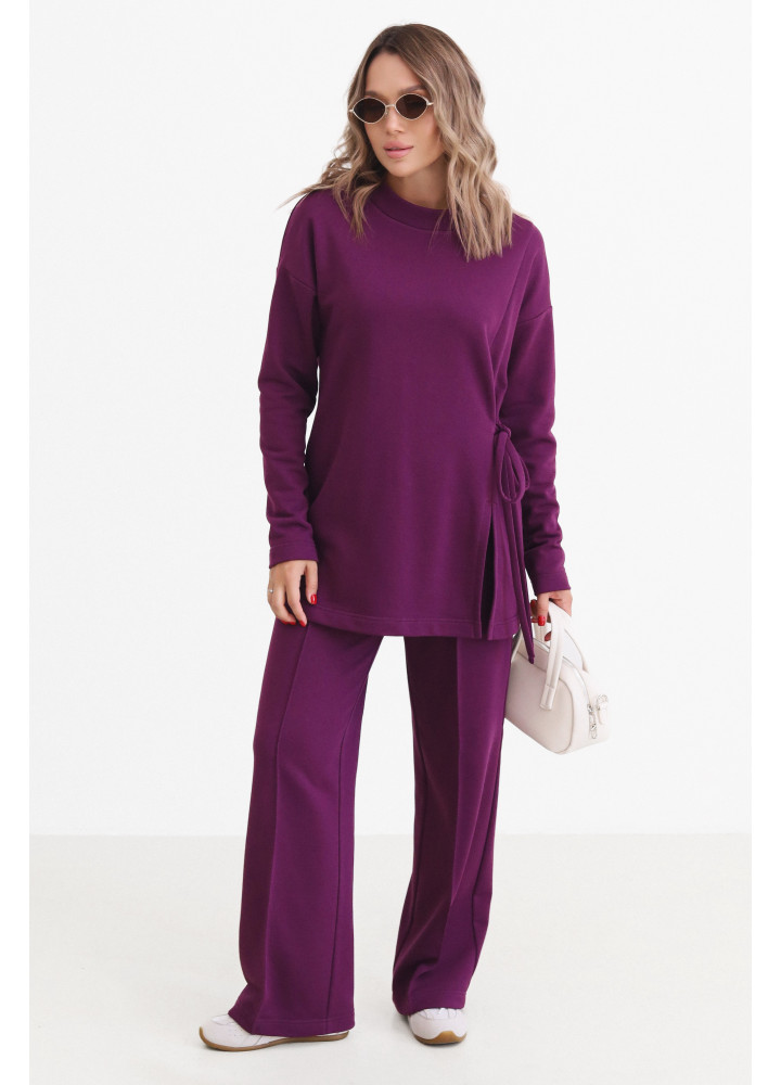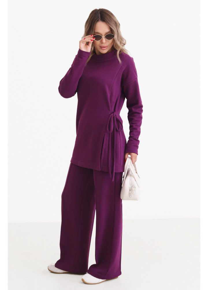 Елегантний та зручний костюм у насиченому кольорі бургунди – ідеальний вибір для повсякденного образу. Він виконаний з м'якого трикотажу, який забезпечує комфорт та свободу руху.