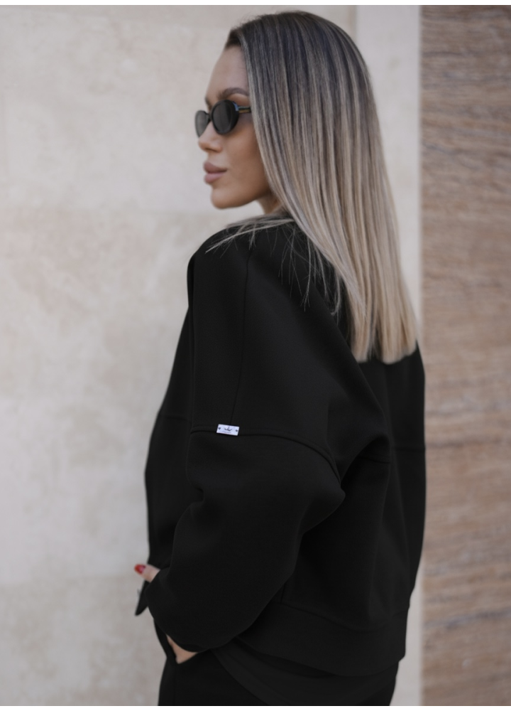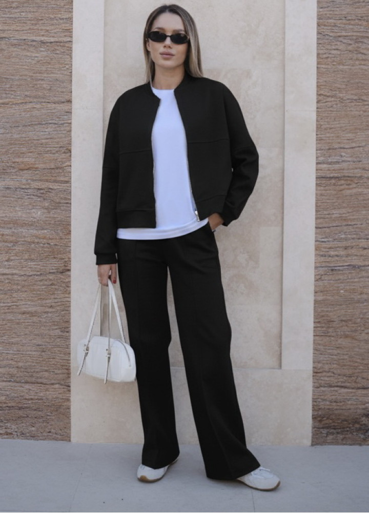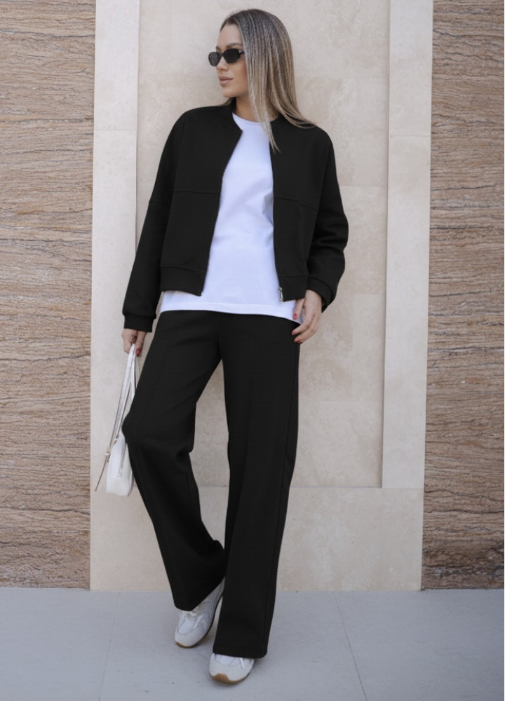 Стриманий чорний колір робить костюм універсальним – його легко комбінувати як із класичними, так і з кежуал-аксесуарами. Чудовий варіант для створення елегантного міського образу!