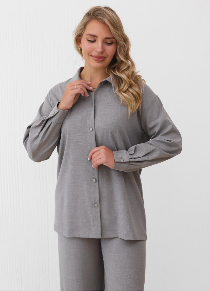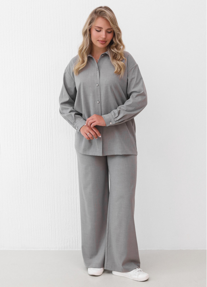 Елегантний та комфортний костюм у нейтральному сірому кольорі.