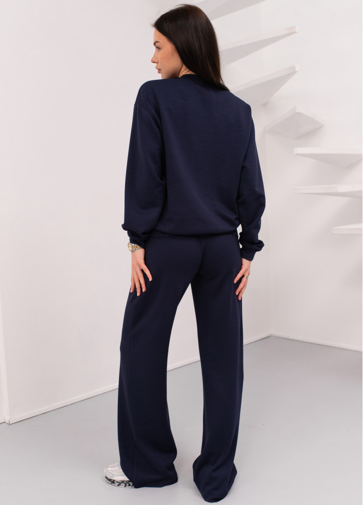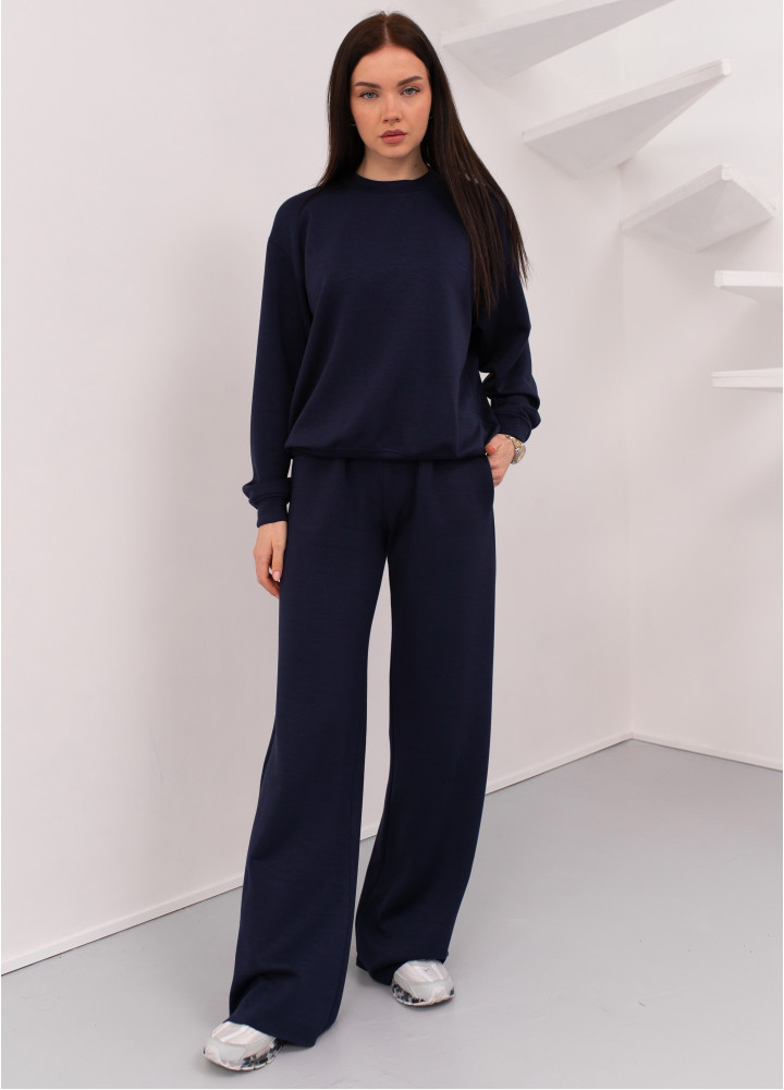 Цей стильний трикотажний комплект — ідеальне поєднання комфорту та лаконічного дизайну. Глибокий темно-синій колір та м'яка фактура тканини роблять його універсальною базою для вашого гардероба.
