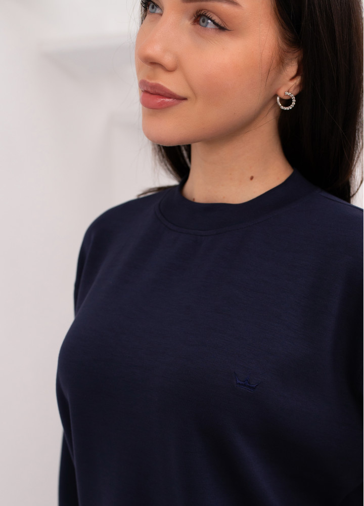 Верх: Вільний світшот з круглим вирізом та еластичними манжетами. Делікатна вишивка у вигляді корони додає образу вишуканості.