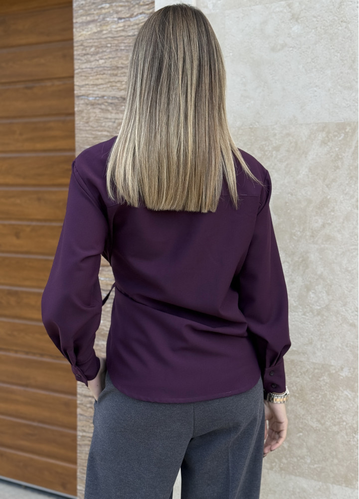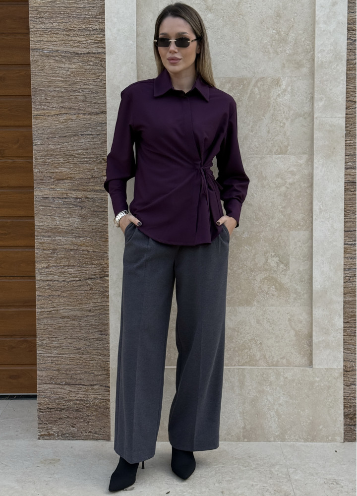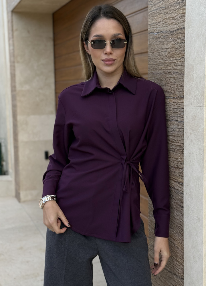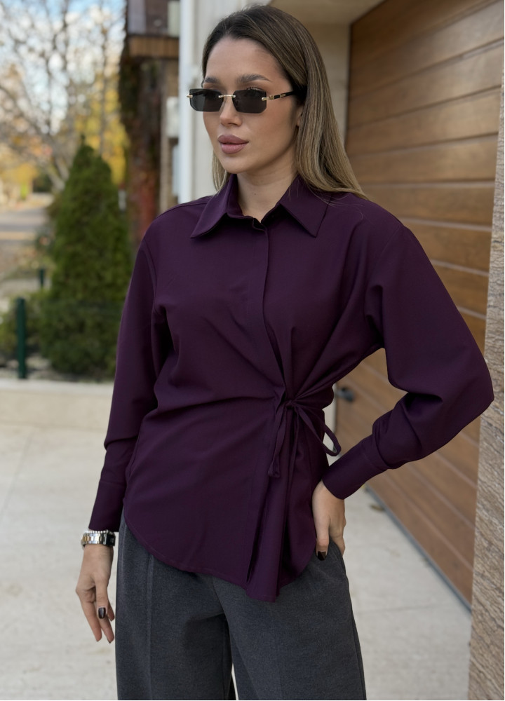 Стильна сорочка на запах у нейтральному мокко відтінку.