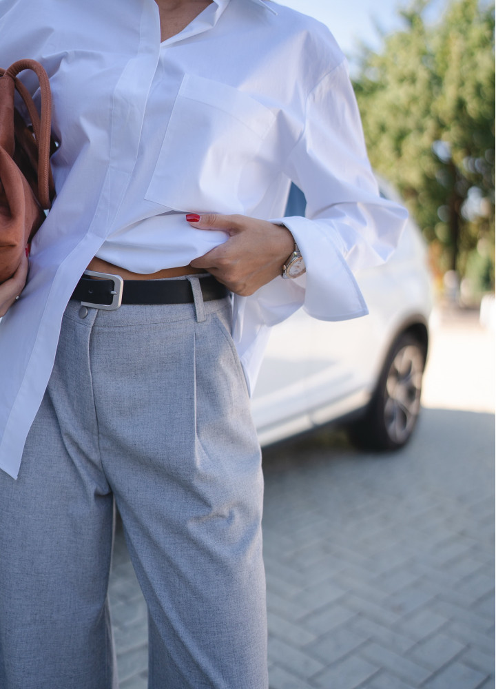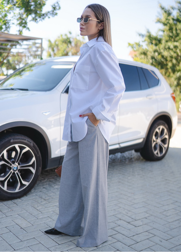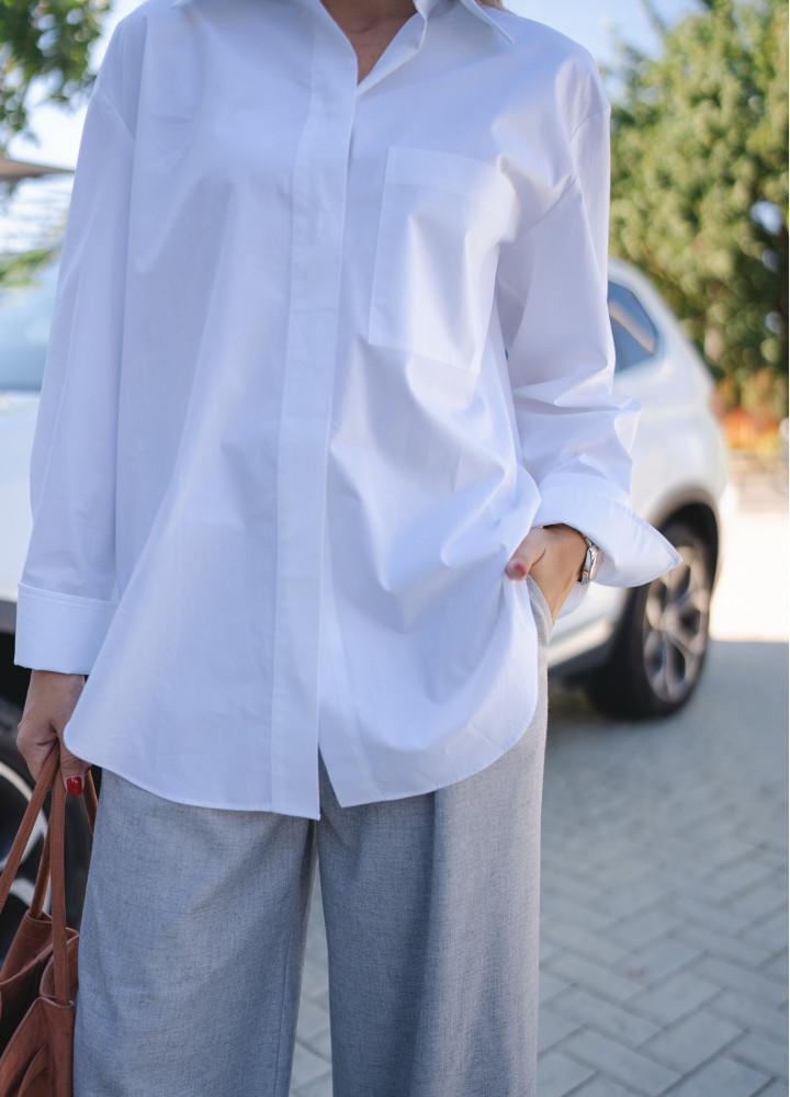 Класична біла сорочка вільного крою – незамінний елемент базового гардеробу.