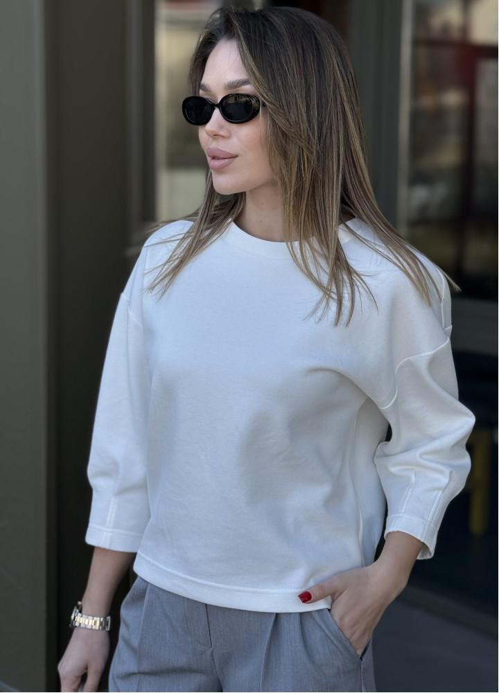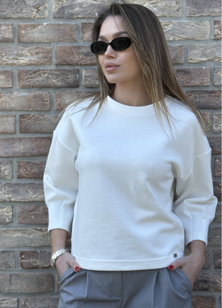 Лаконічний, елегантний та універсальний – цей лонгслів стане ідеальною основою для стильних образів у будь-яку пору року. Чистий білий колір додає свіжості та легкості, а силует з вирізом-човником підкреслює лінію плечей, створюючи витончений акцент.