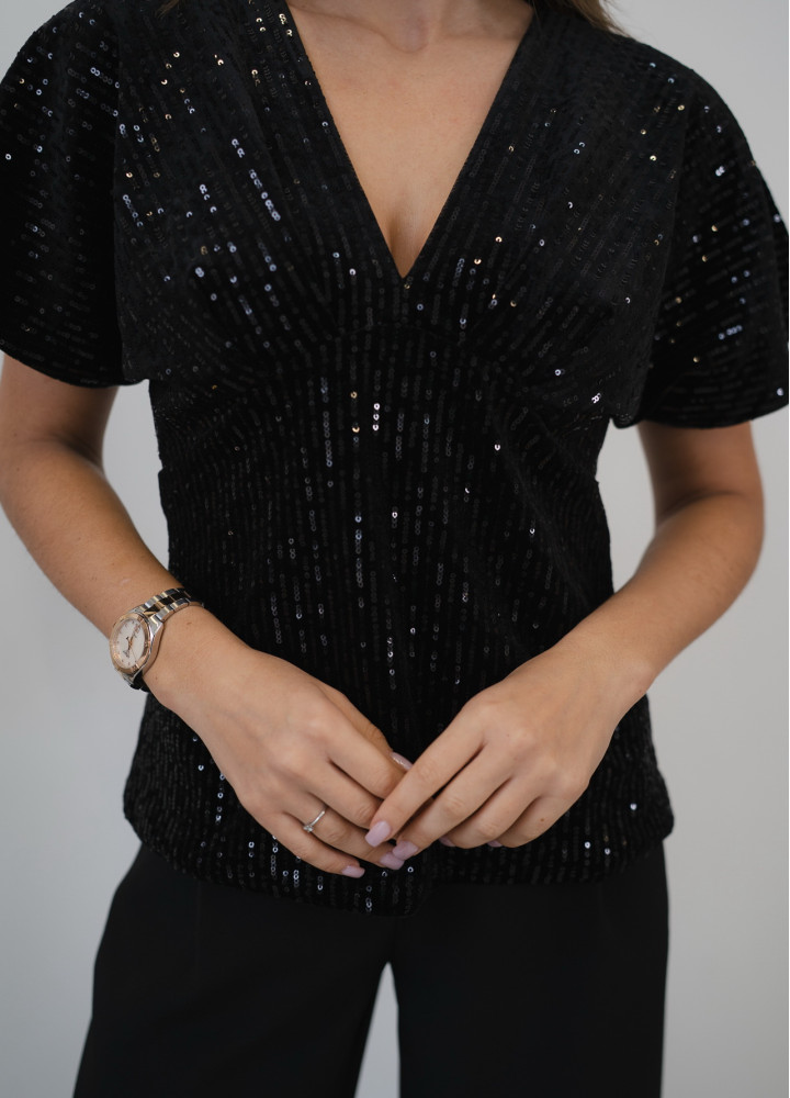 Ефектний святковий топ, повністю розшитий мерехтливими паєтками.