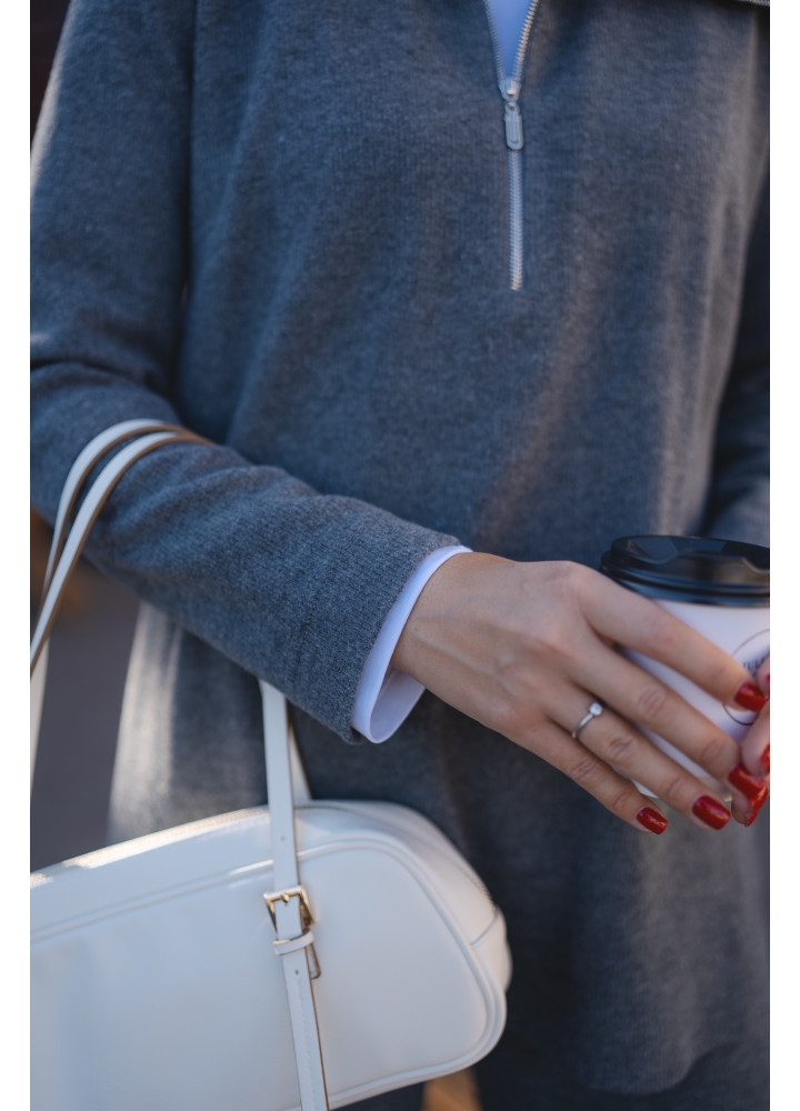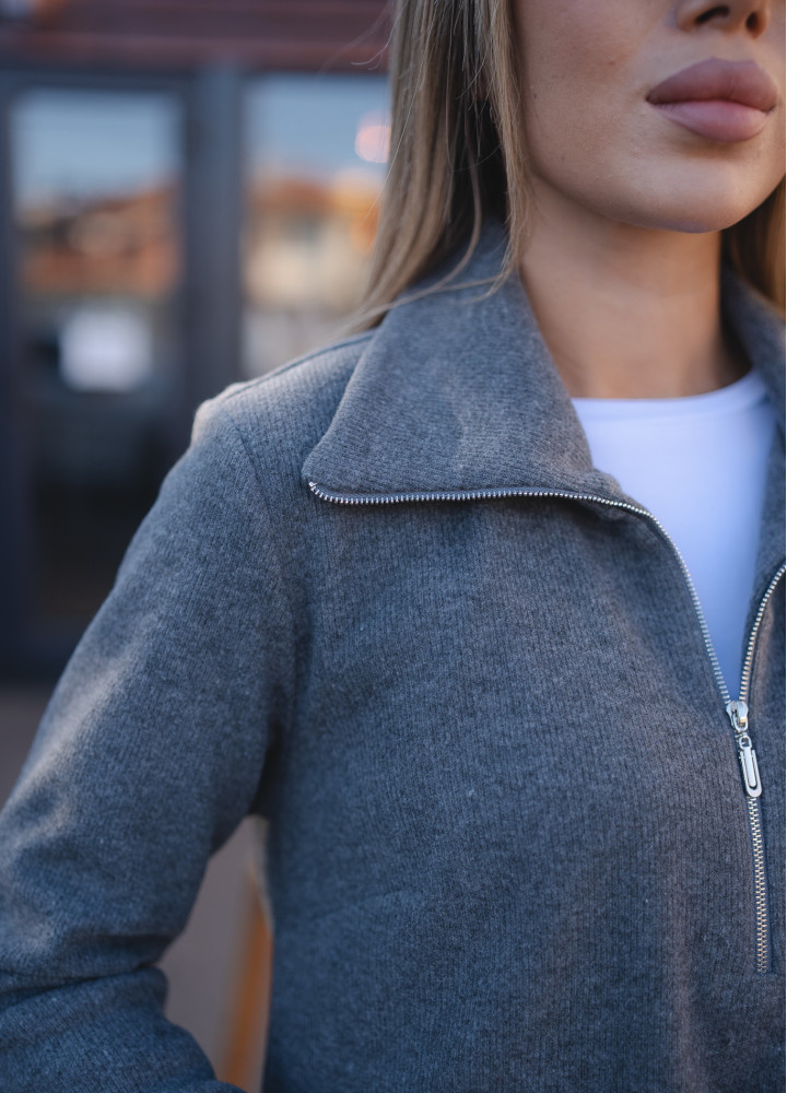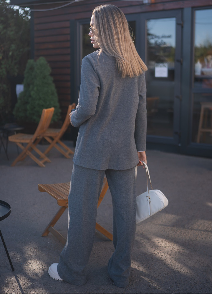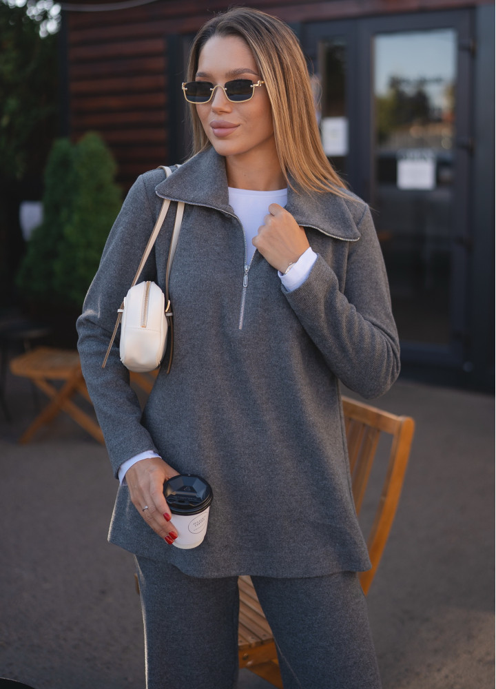 Костюм повседневный с туникой на молнии и широкими брюками шерсть серая