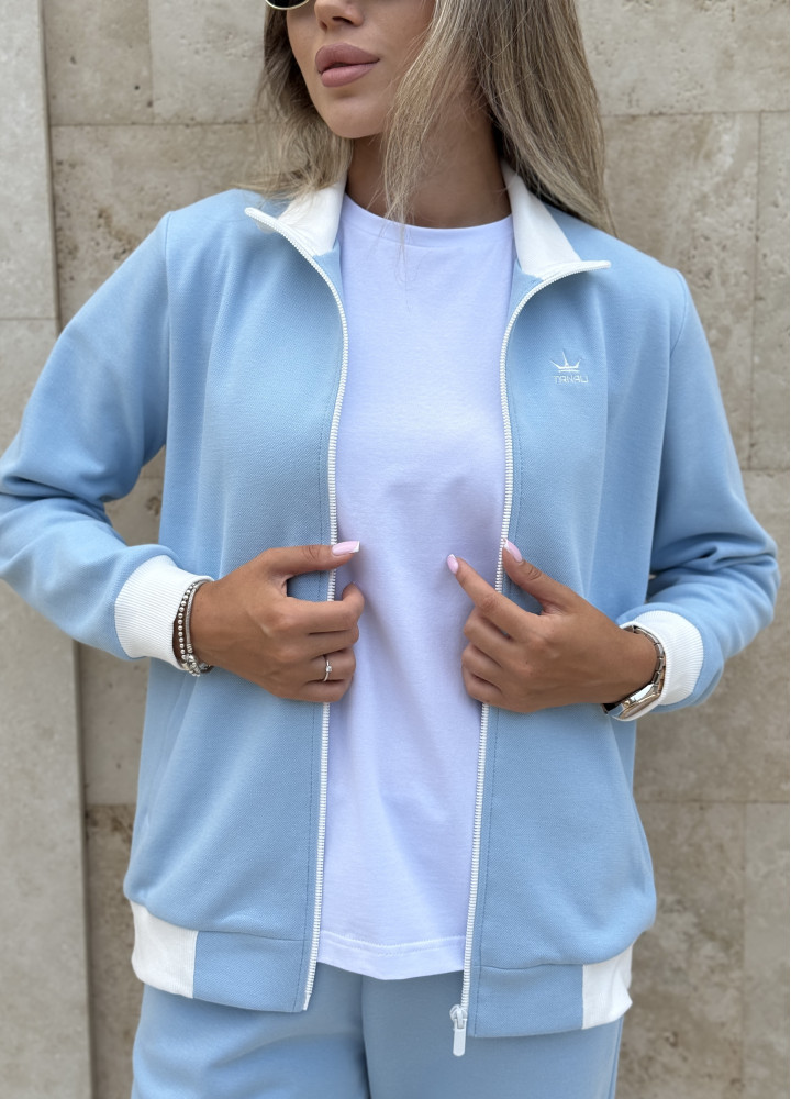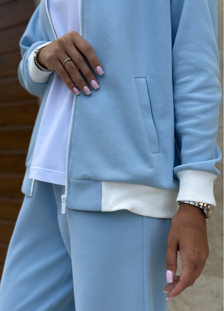 Костюм из трикотажа с кофтой на змейке и джоггерами голубой