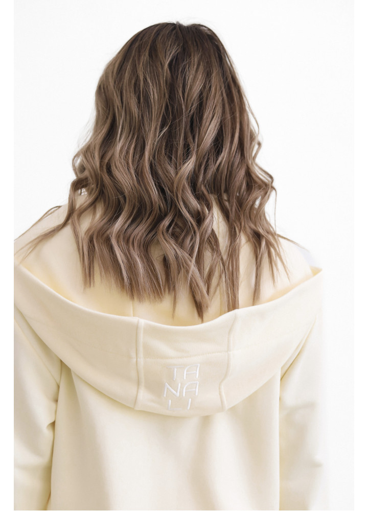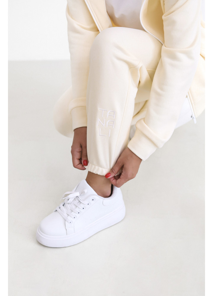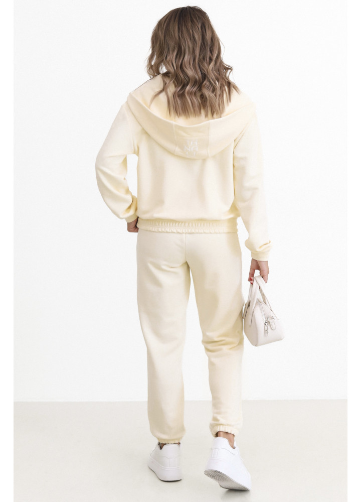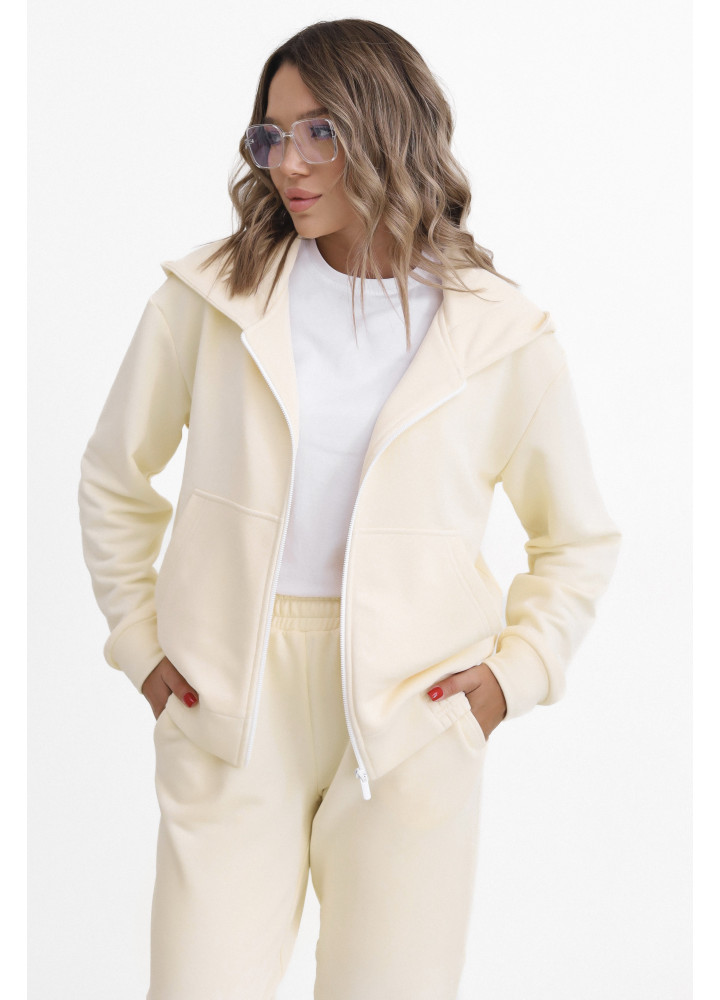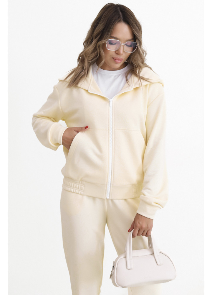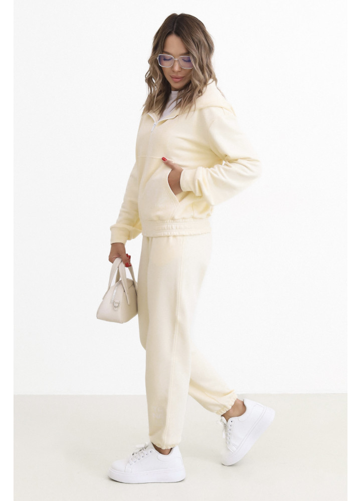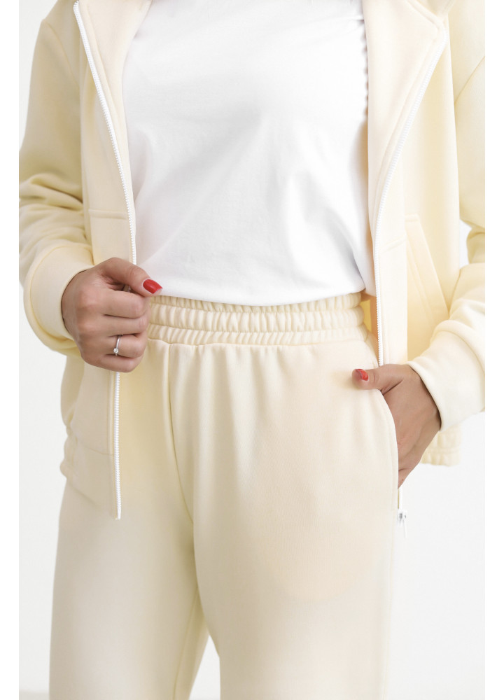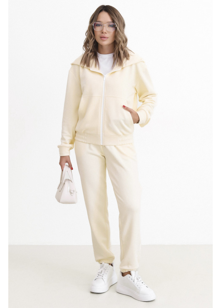 Трикотажный костюм худи на змейке и штаны-джоггеры хлопок сливочно-желтый