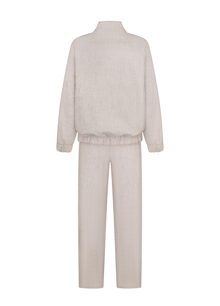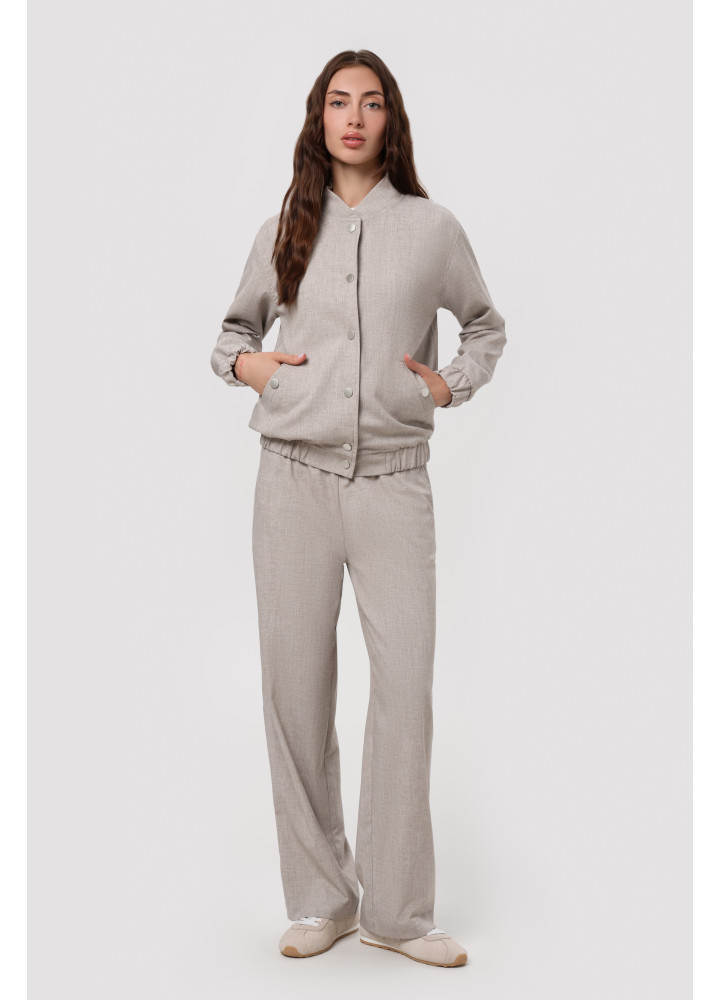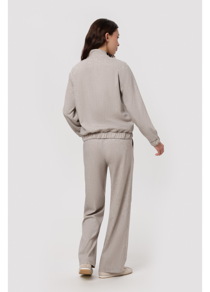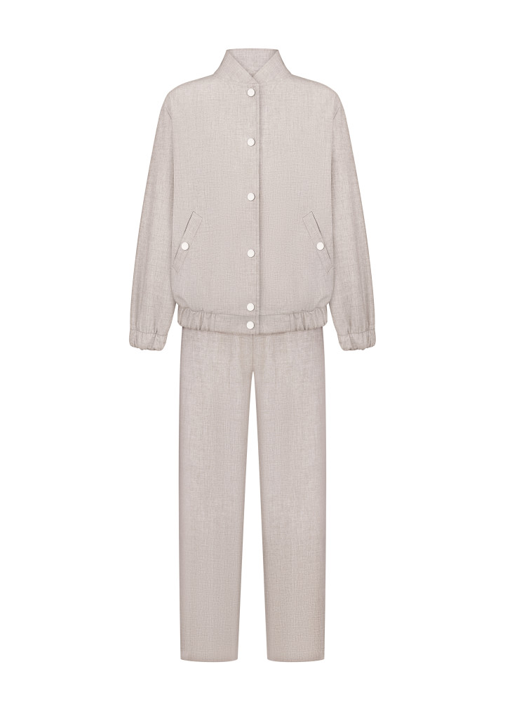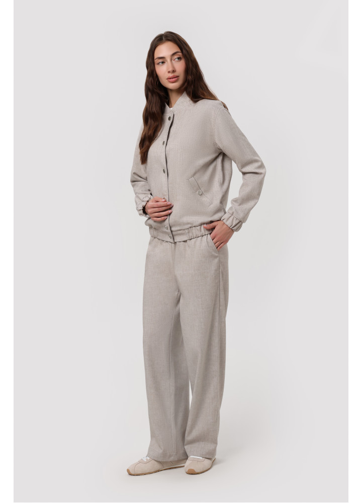 Элегантный и современный костюм-двойка из стильной куртки-бомбера и широких брюк.