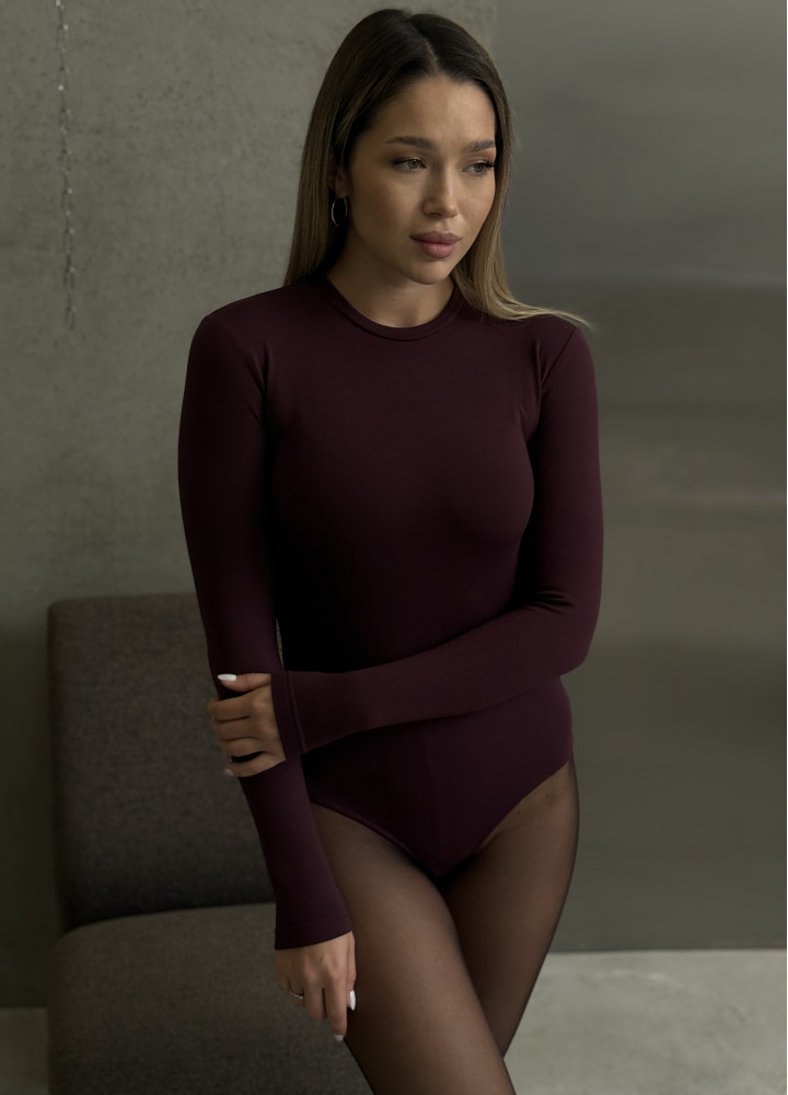 Это стильное боди с утеплителем цвета бордо – идеальный выбор для прохладного времени года.