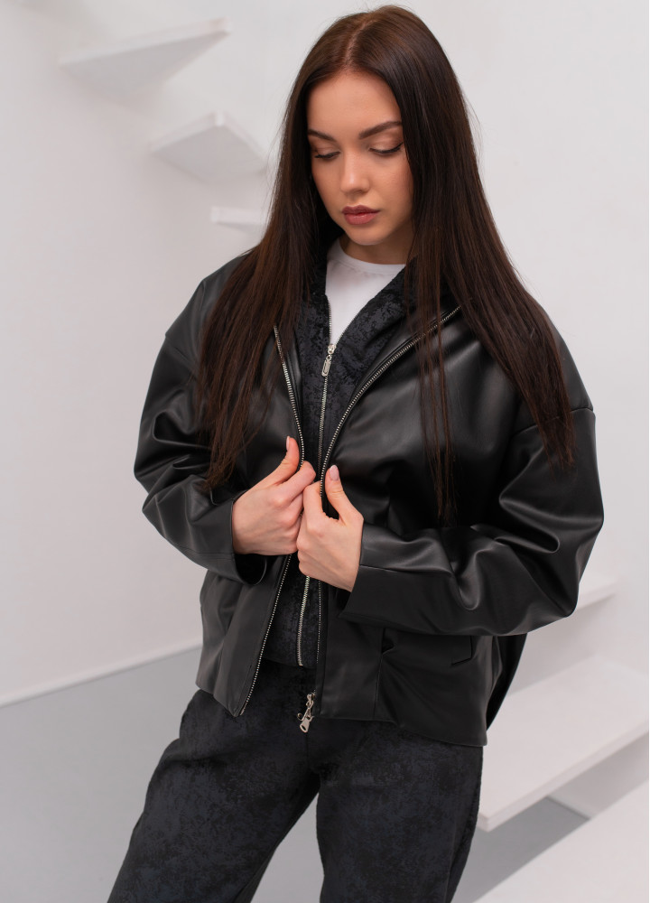 Обновите свой гардероб базовой вещью, сочетающей в себе дерзость классической «косухи» и комфорт повседневного стиля. Этот бомбер из мягкой эко-кожи — идеальный выбор для демисезонной погоды.